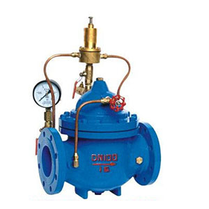 500X泄压/持压阀由主阀、泄压/持压导阀针阀、球阀、微形过滤器和压力表组成水力控制接管系统。利用水力自动操作,即可以作泄压阀用又可作持压阀用。作泄压阀用时,可维持供水路压力在设定的安全值之下;做持压阀用,可维持主阀上游水压在设定值之上,保持主阀上游供水压力。