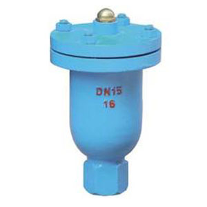 QB1内螺纹单口排气阀主要由阀体、阀门、上盖、阀杆、浮球、排气嘴等组成。用于小口径管道上管子为φ50-200,它作为管道的排气作用,使管道不会出现闭气、气阻,如水泵停电时管内随时会出现负压力,自动吸气可保护管道安全。